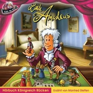 Das Hörbuch Königreich Rücken mit Musik von Wolfgang Amadeus Mozart. Neue Geschichten von Axel Ruhland über musikalische Abenteuer und Streiche mit Amadeus, Nannerl, Kajetan und Pumperl, den kleinen Helden aus der TV-Serie "Little Amadeus".