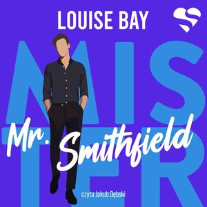 Tło jest jednolite, w kolorze granatowym, z dużym, jasnoniebieskim napisem „MISTER” w tle, który częściowo zasłania sylwetka. Na pierwszym planie widnieje tytuł „Mr. Smithfield” zapisany białą, dynamiczną czcionką w stylu odręcznym.